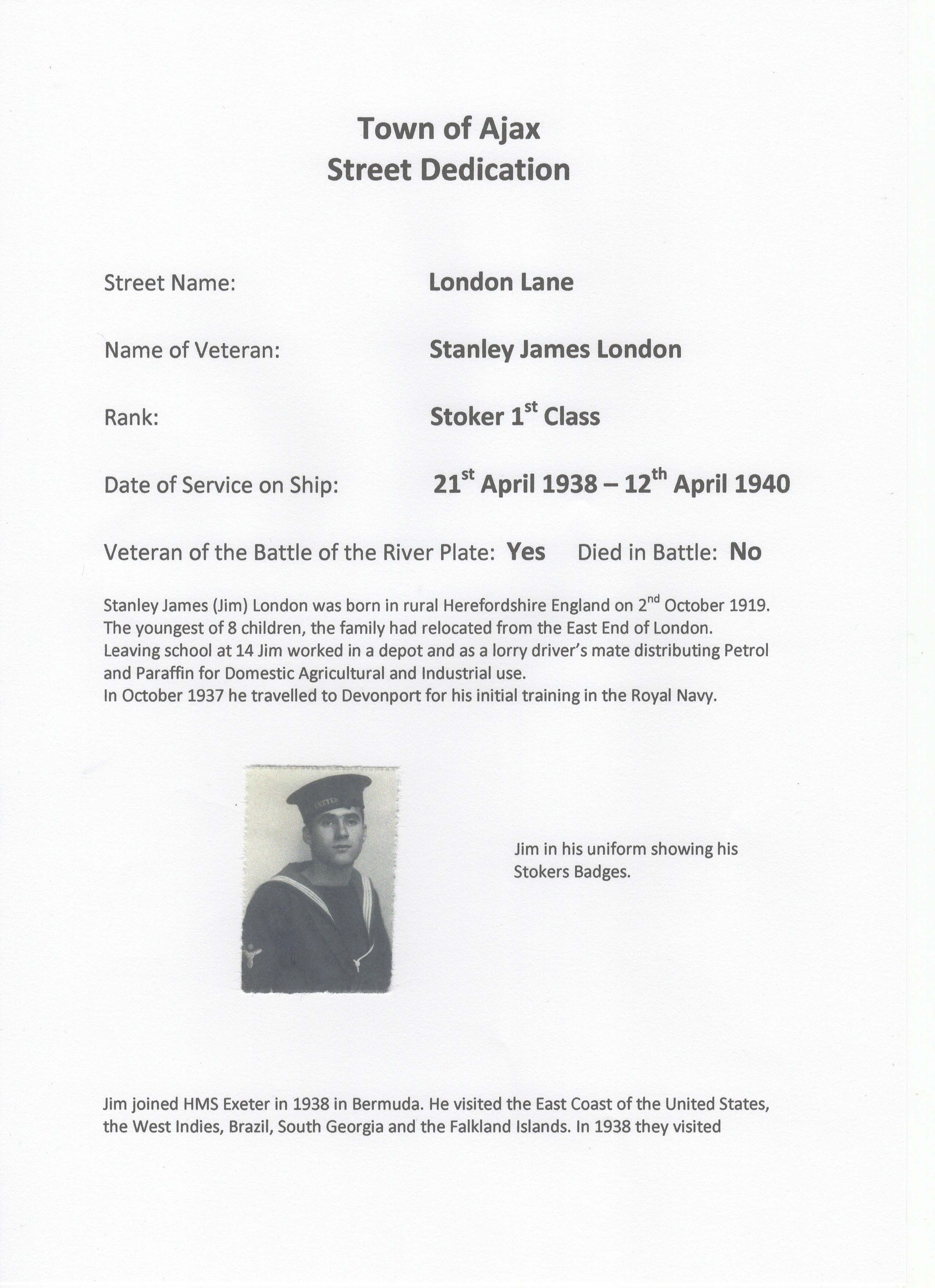 Jim London has a road named after him in Ontario, Ajax, Canada.
